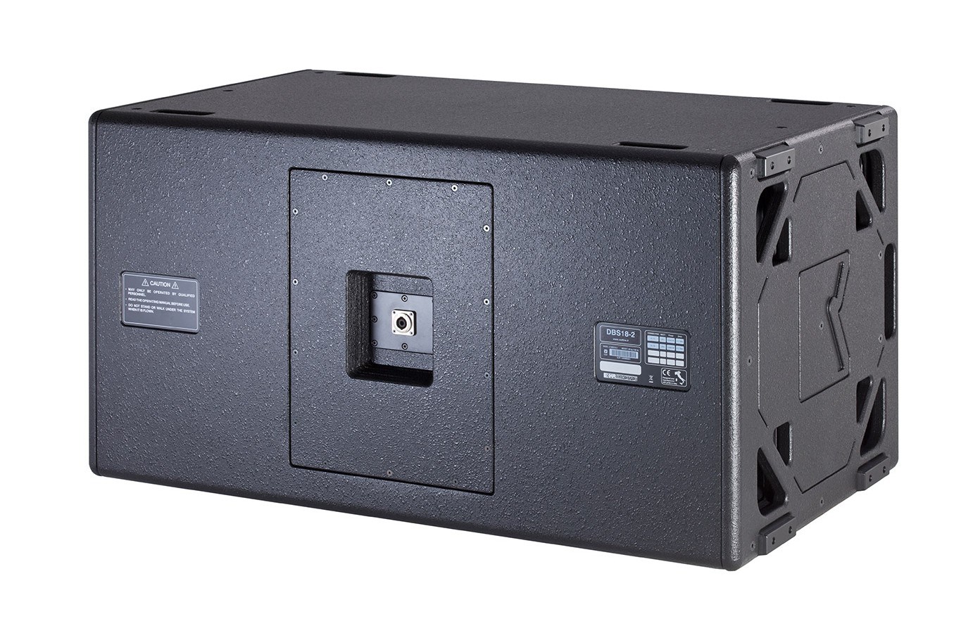 Thùng loa DBS18-2 được chế tạo từ ván ép Baltic Birch dày 18 mm, dán keo phenolic siêu bền, sơn phủ lớp chống trầy, chống thấm nước màu đen. Lưới thép chống cộng hưởng bảo vệ mặt trước, đồng thời hạn chế rung động khi hoạt động ở mức âm lượng cao. Tay cầm lõm hai bên giúp việc vận chuyển dễ dàng hơn, kết hợp với tùy chọn trolley-board “stack & strap” để xếp chồng và di chuyển trên mọi địa hình.