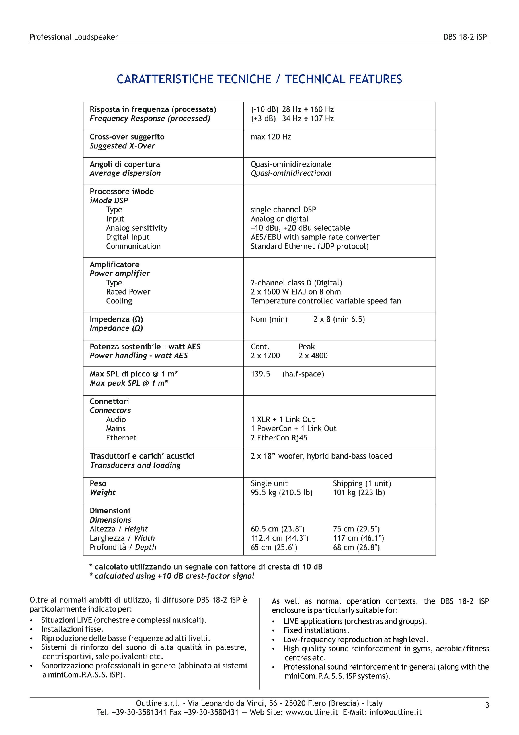 DBS18-2 tích hợp công nghệ Decoupled Baffle Subwoofer do Outline phát triển, giúp tối ưu hóa hiệu suất âm học, giảm rung thùng, loại bỏ cộng hưởng nội bộ và triệt tiêu hiện tượng “port turbulence” thường thấy ở các subwoofer dạng phase-inverted truyền thống. Thiết kế cổng phản xạ lớn và dài giúp mở rộng băng tần trầm và tái tạo chính xác các tần số thấp.