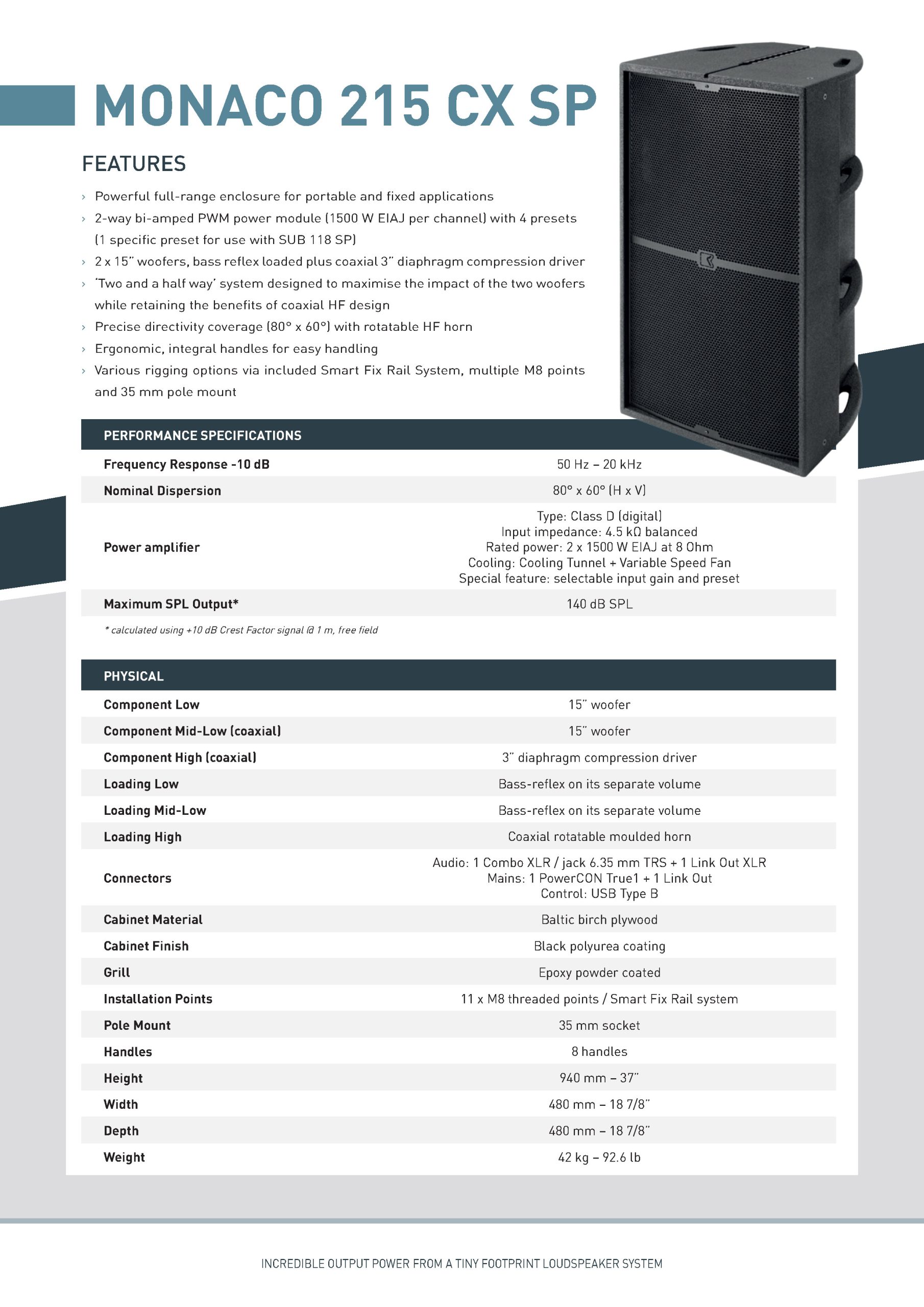 MONACO 215 CX SP – 2 x 15” LF + 3” HF – 140 dB SPL