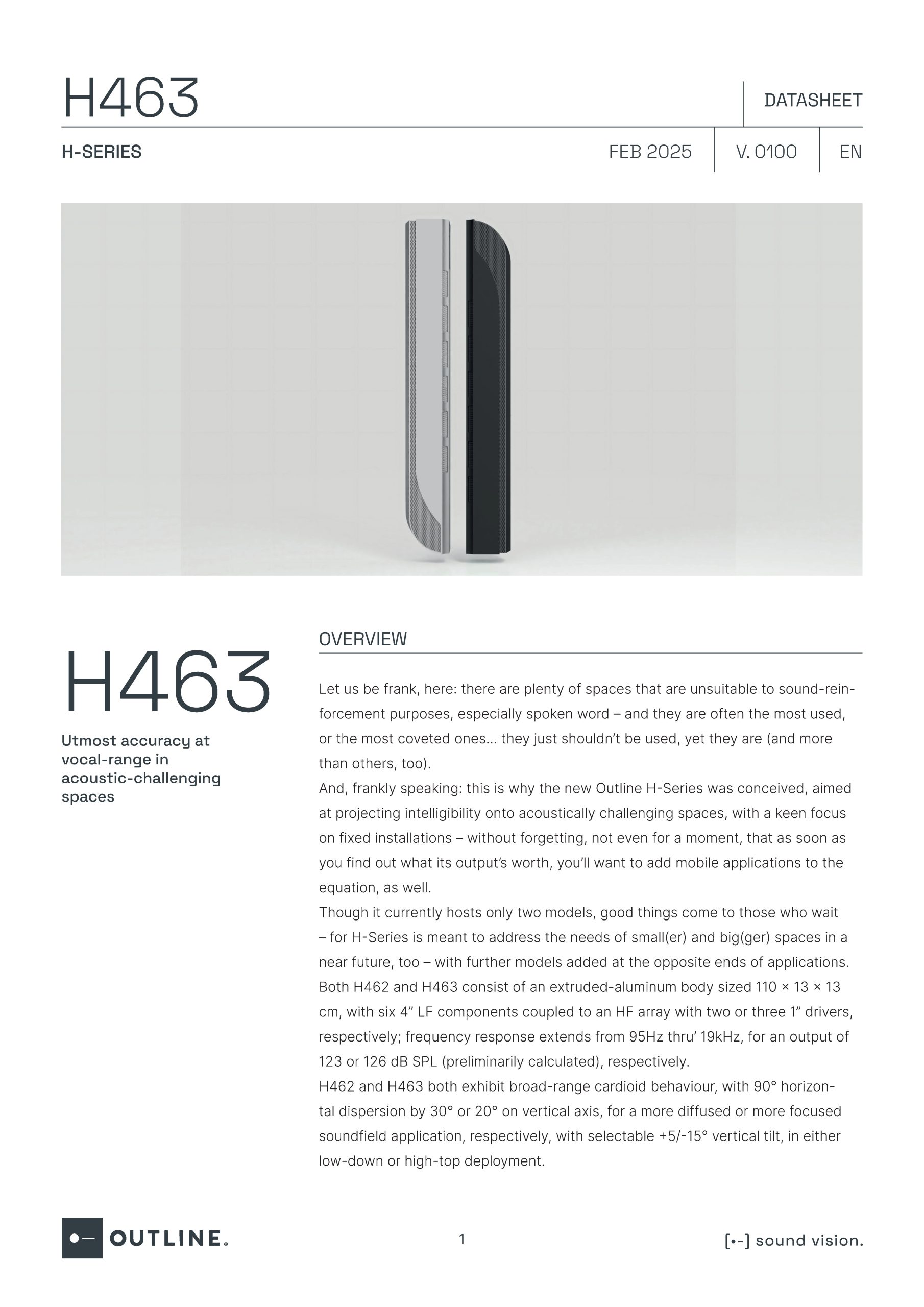 Outline H Series được phát triển với một mục tiêu rất rõ ràng: mang lại độ rõ ràng và chính xác tối đa cho dải giọng nói, ngay cả trong những không gian có điều kiện âm học kém – nơi mà hầu hết các hệ thống âm thanh thông thường đều gặp khó khăn.