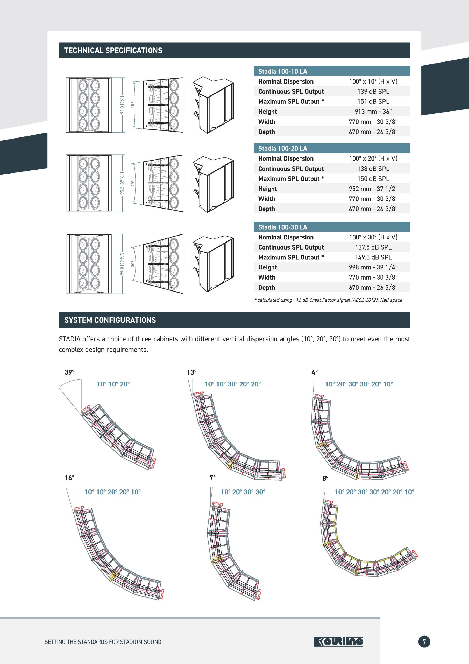 STADIA 100-30 là thành viên trong dòng STADIA 100 LA, gồm 3 mô hình có cùng kích thước, góc phủ ngang 100° nhưng khác nhau về góc phủ dọc (10°, 20°, 30°). Nhờ sự đa dạng này, kỹ sư âm thanh có thể kết hợp các mô-đun để xây dựng hệ thống loa đáp ứng tối ưu cho mọi không gian và địa hình.