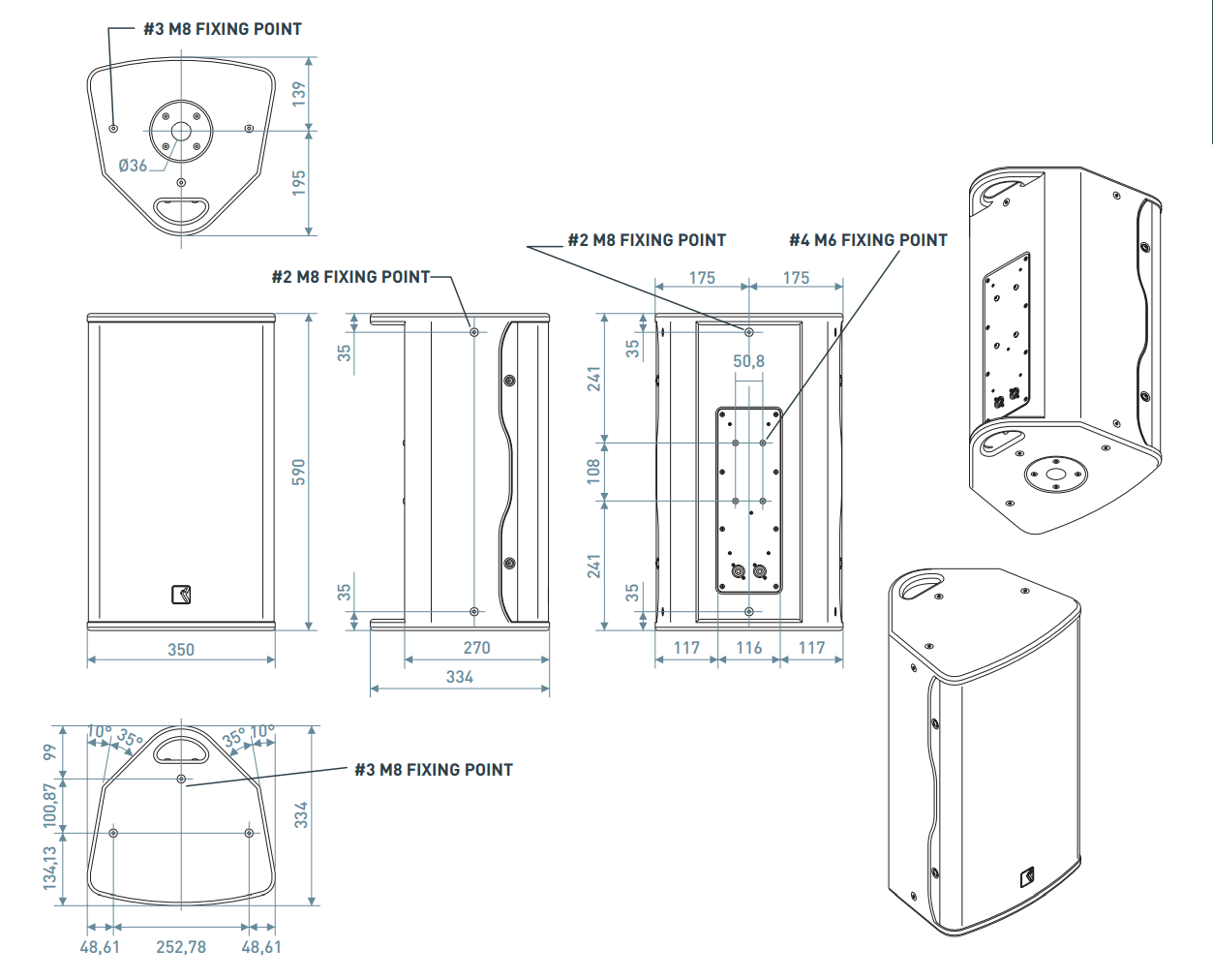 - Thiết kế thùng loa đa giác, lý tưởng để dùng làm monitor sân khấu.