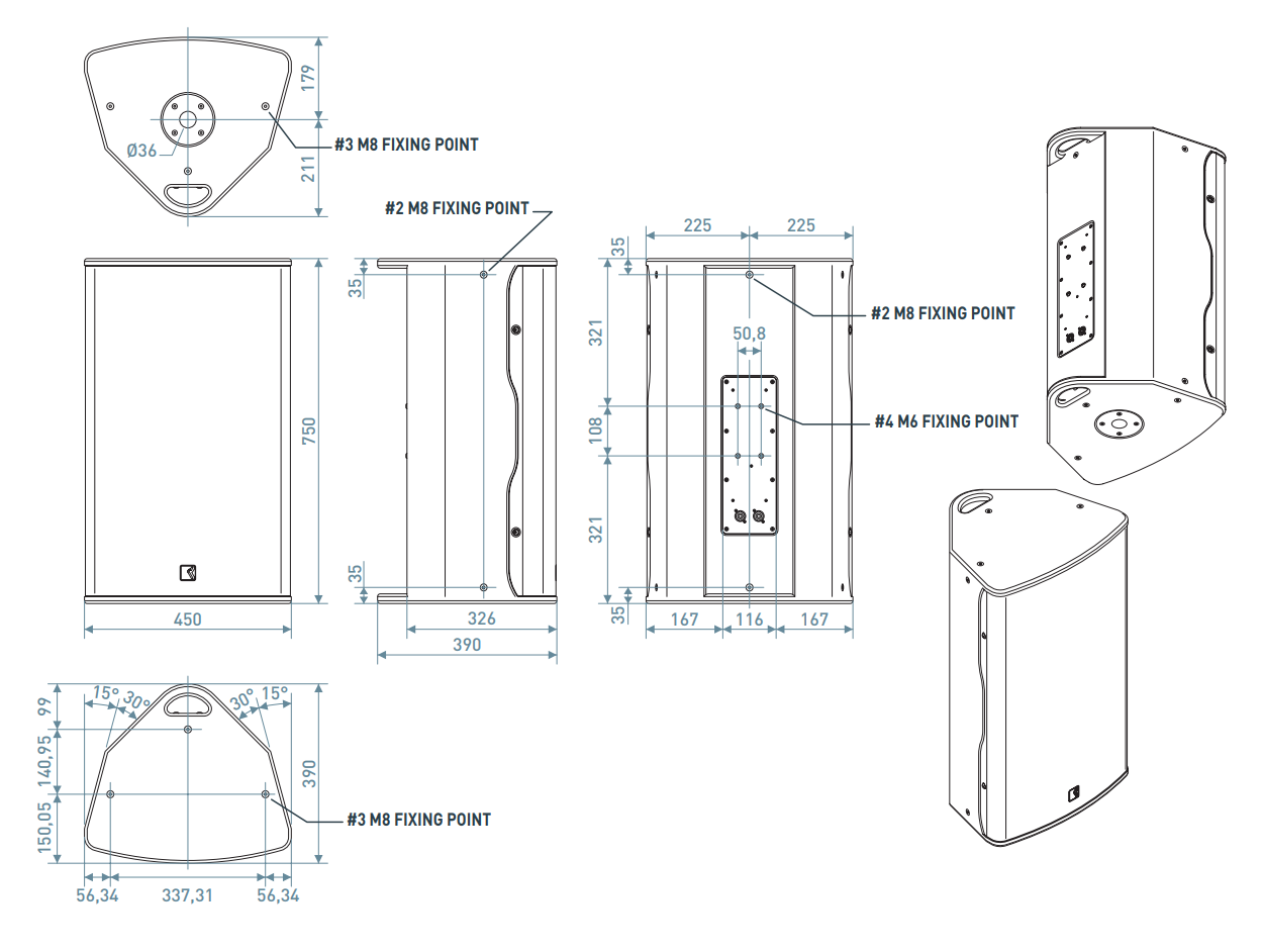 - Thiết kế thùng đa giác giúp dễ dàng sử dụng làm loa monitor sân khấu.